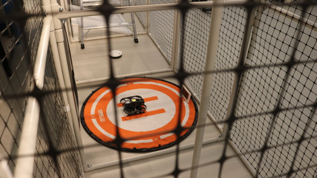 本イベントでは、大会でのチャレンジ内容や、ソフトウェアとハードウェアの双方に関する研究開発、各ステージでの成果、技術面などについて報告しました。会の途中では、実際の競技フィールドを模した環境でのデモ飛行も行いました。